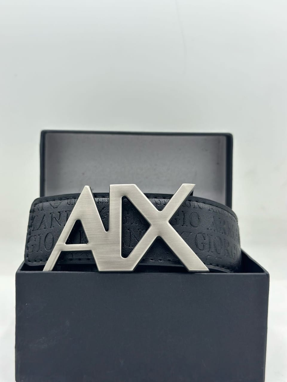 Elevate your everyday style with this sleek A|X Armani Exchange belt, designed for a modern and confident look. Crafted in black embossed leather, the belt features a bold silver-tone A|X logo buckle that adds a signature designer touch.