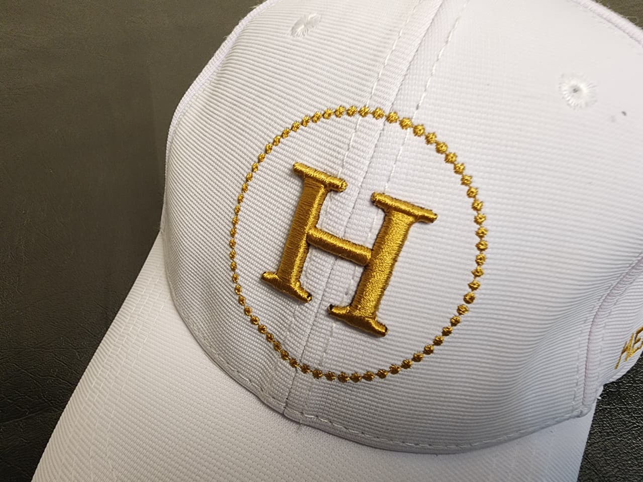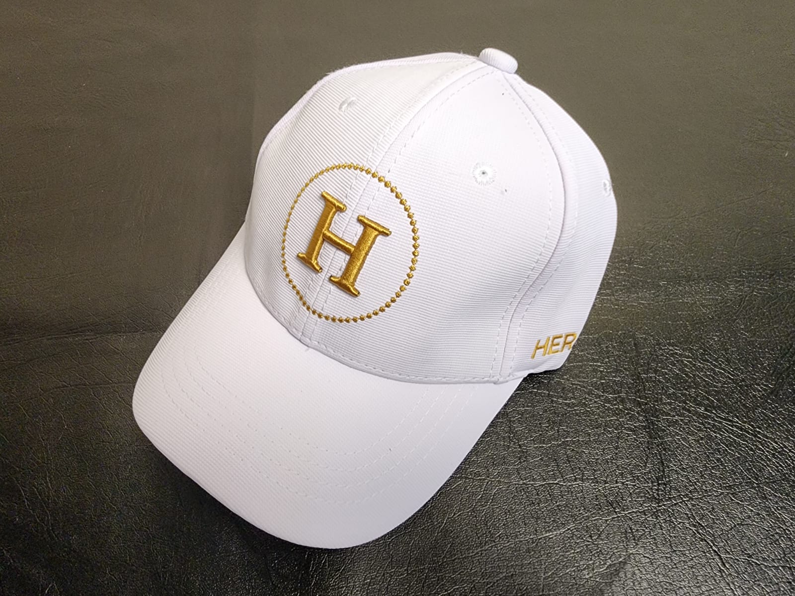 White Luxury Cap with Gold Embroidered "H" – Premium Designer Style