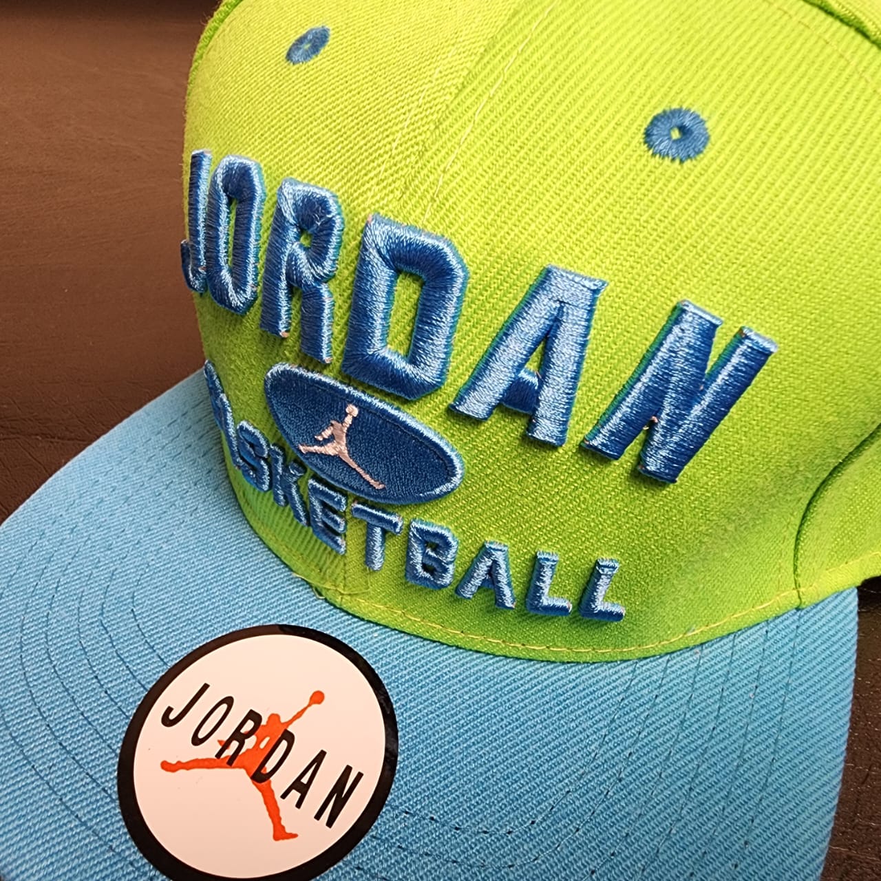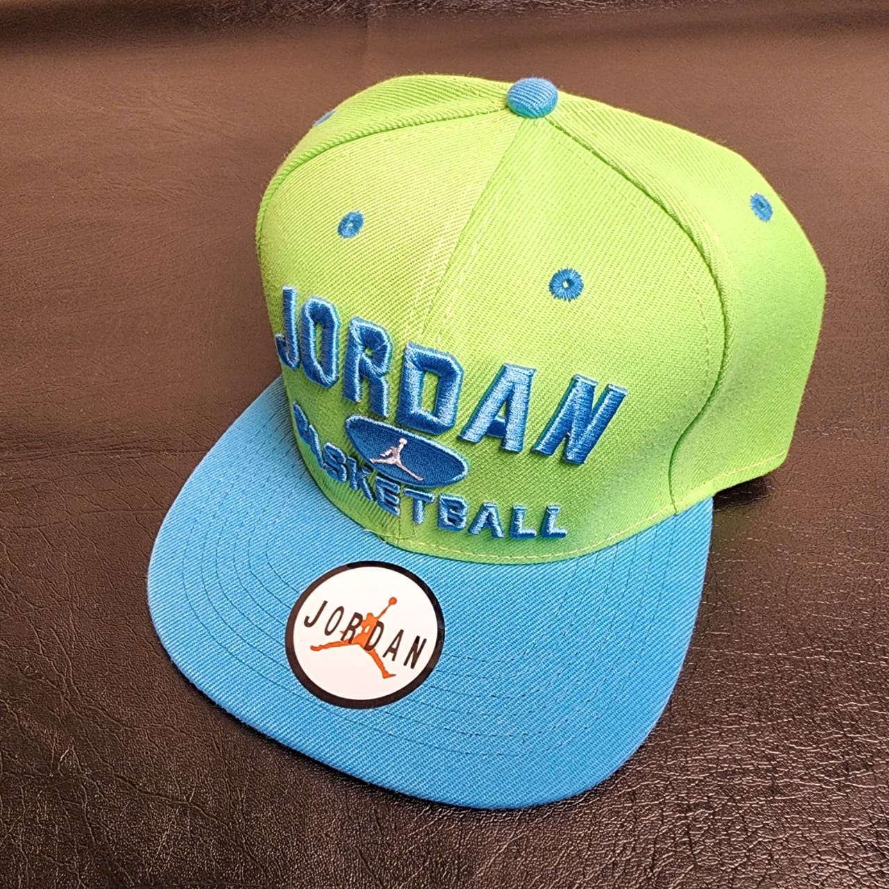 Jordan Basketball Snapback Cap – Vibrant Green and Blue with Iconic Logo