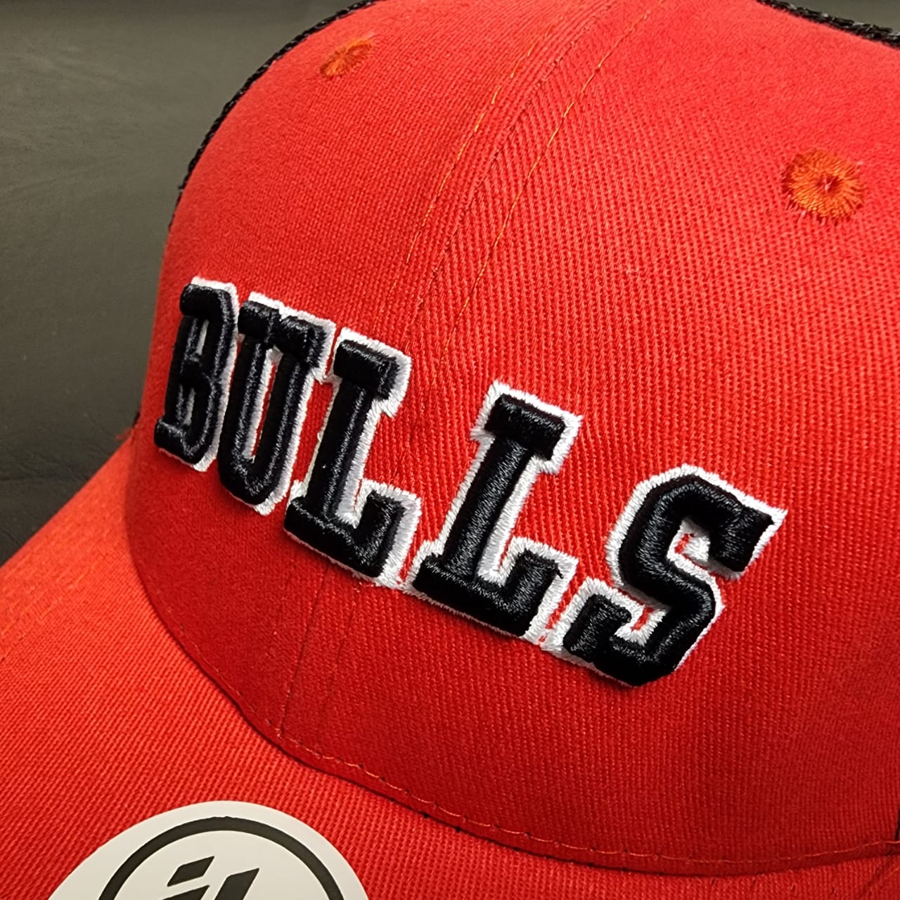 Chicago Bulls Trucker Hat – Red & Black with Bold "BULLS" Embroidery