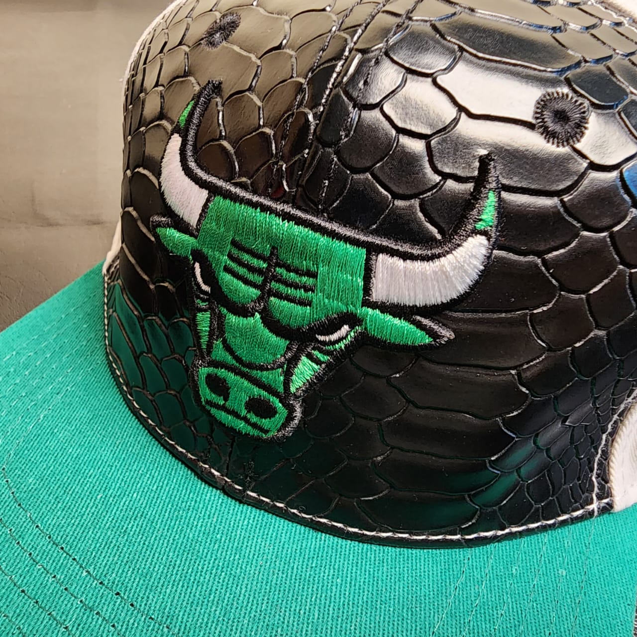 Limited Edition Chicago Bulls Snapback – Black Snakeskin Panel with Teal Brim