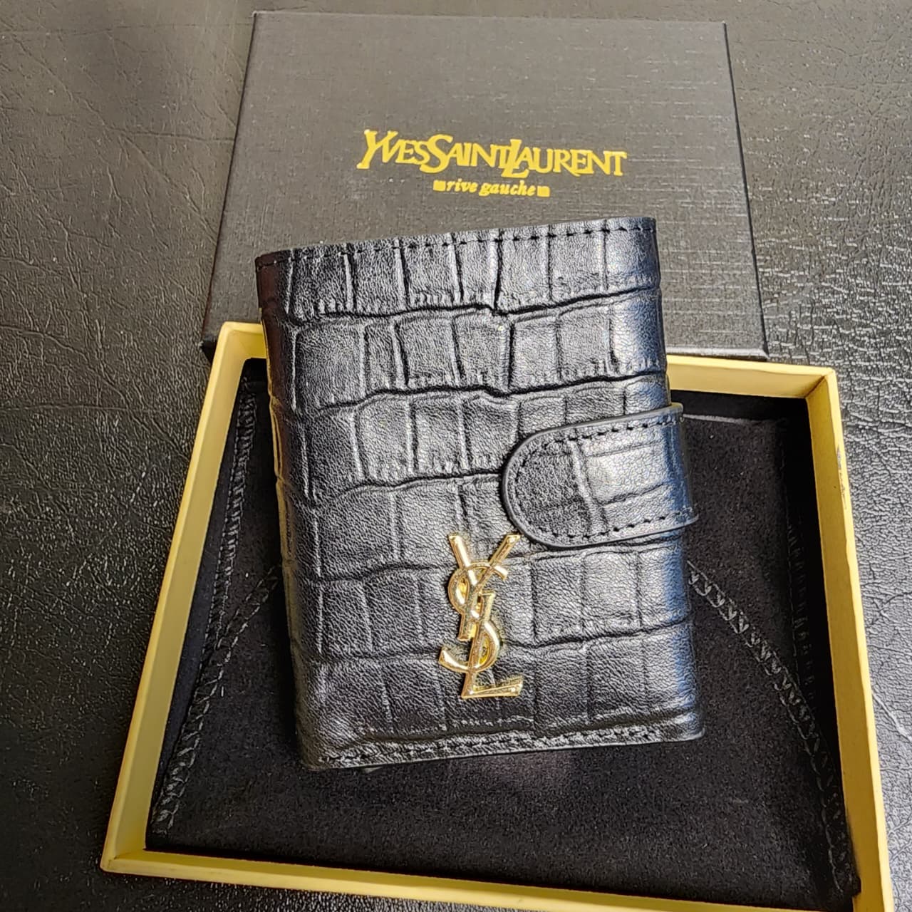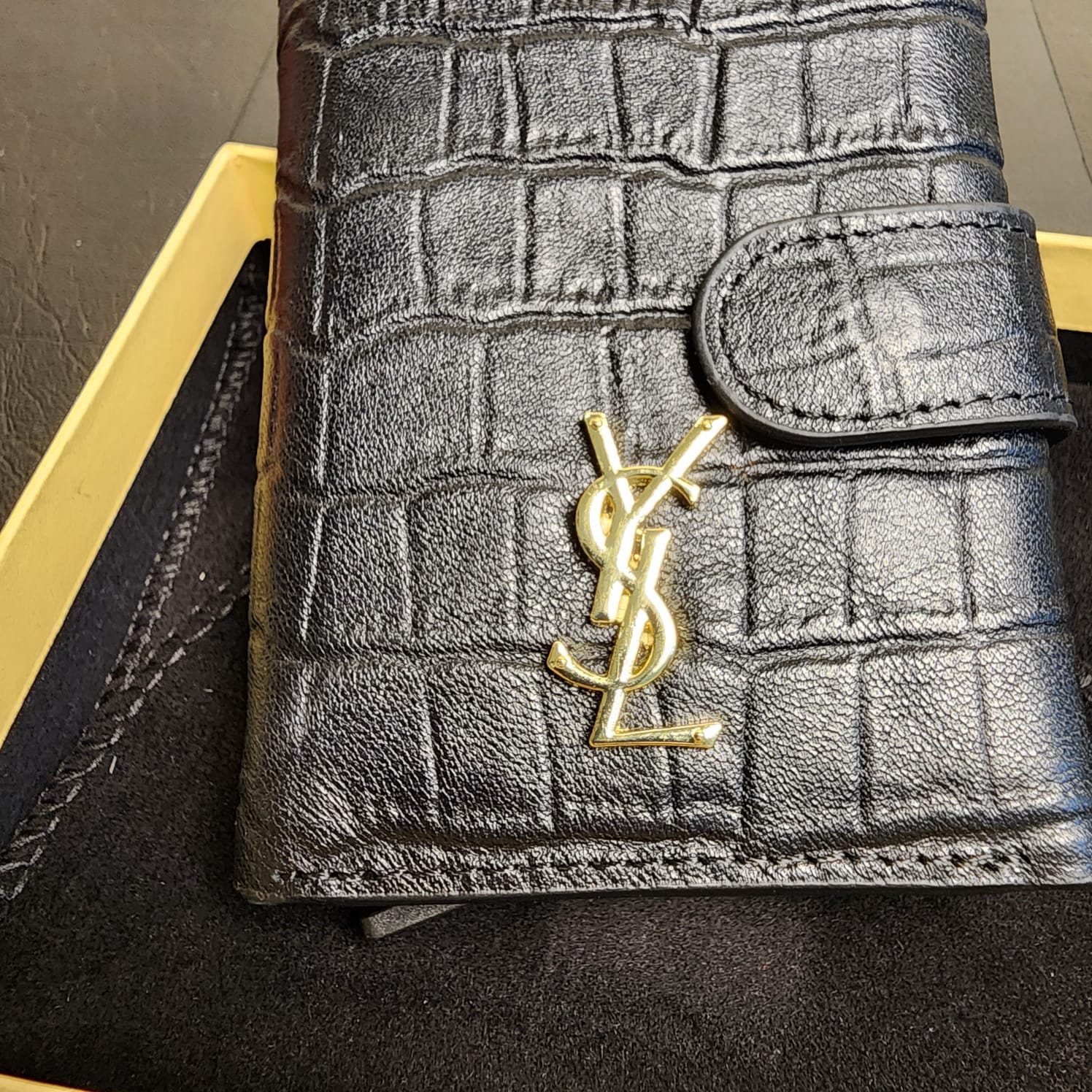 Yves Saint Laurent Luxury Crocodile-Pattern Leather Wallet – Black & Gold Edition