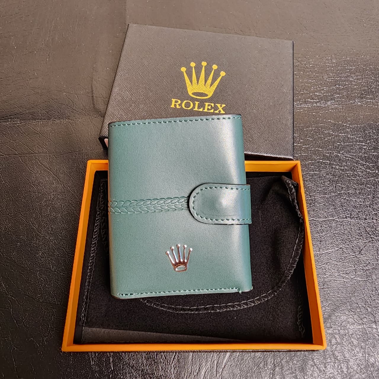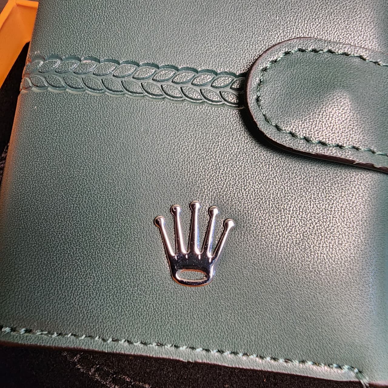 Rolex Leather Wallet – Elegant Green with Signature Crown Emblem