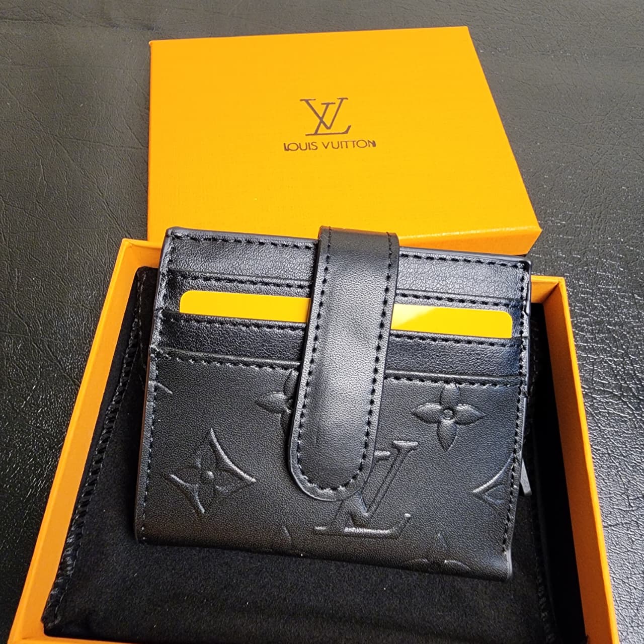 Louis Vuitton Monogram Leather Card Wallet – Black Elegance in Compact Form